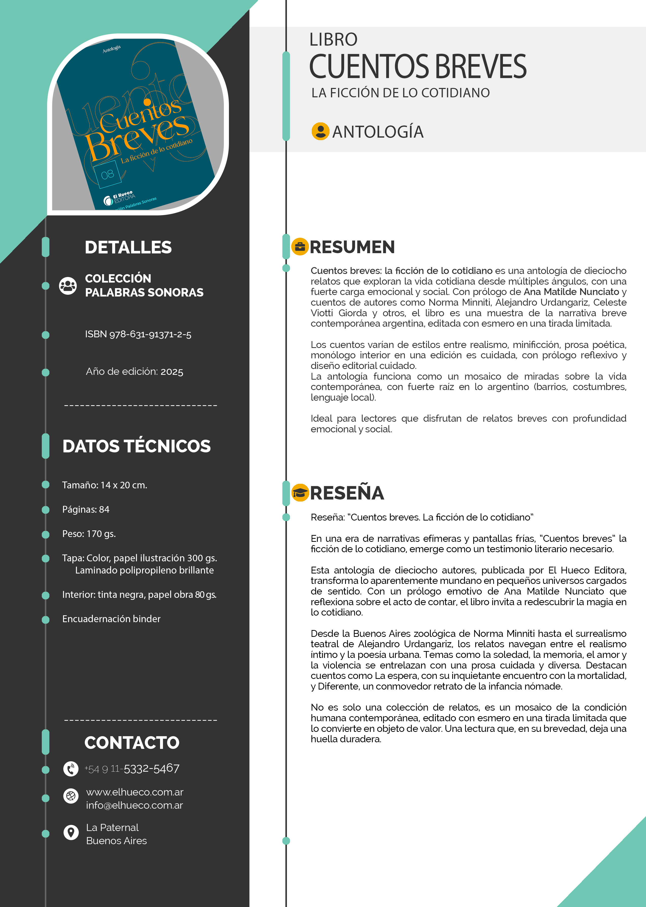 Nuestro fondo editorial incluye títulos como "Cuentos Breves" (Antología),